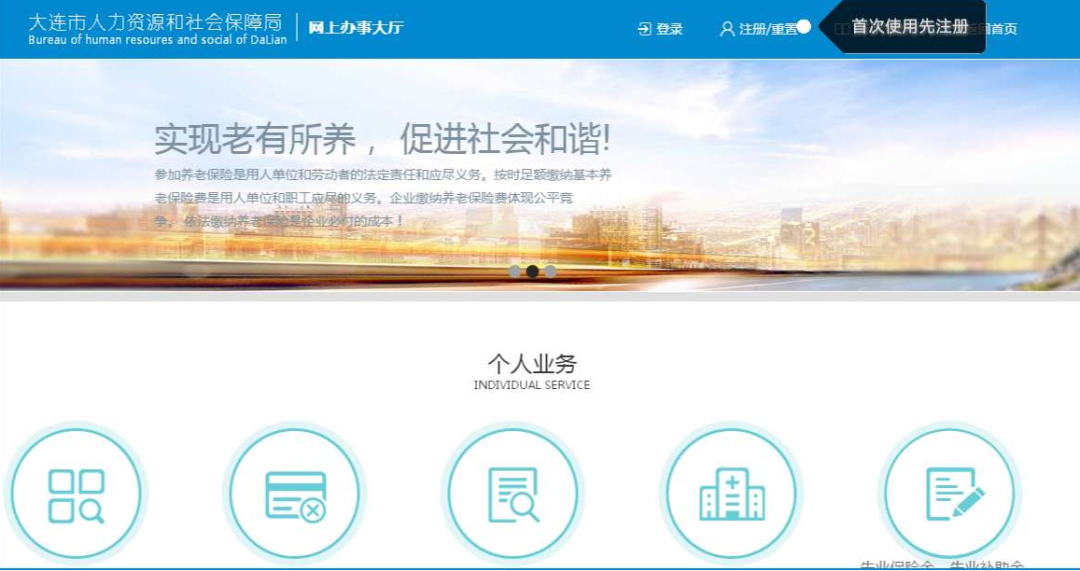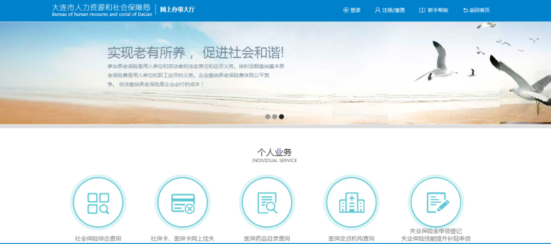 步驟一:失業(yè)人員本人通過計(jì)算機(jī)登錄大連市人力資源和社會(huì)保障局-網(wǎng)上辦事大廳→個(gè)人業(yè)務(wù)(網(wǎng)址:http://bsdt.dlyun.work/personal.jsp