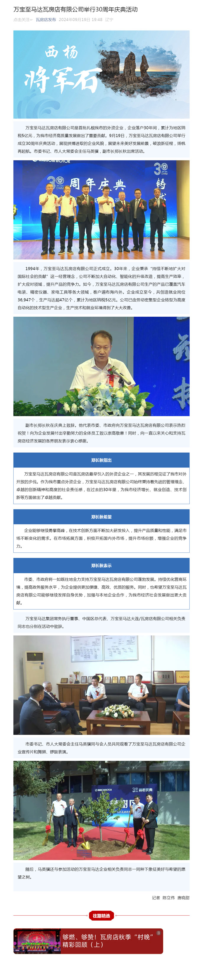萬寶至馬達瓦房店有限公司舉行30周年慶典活動